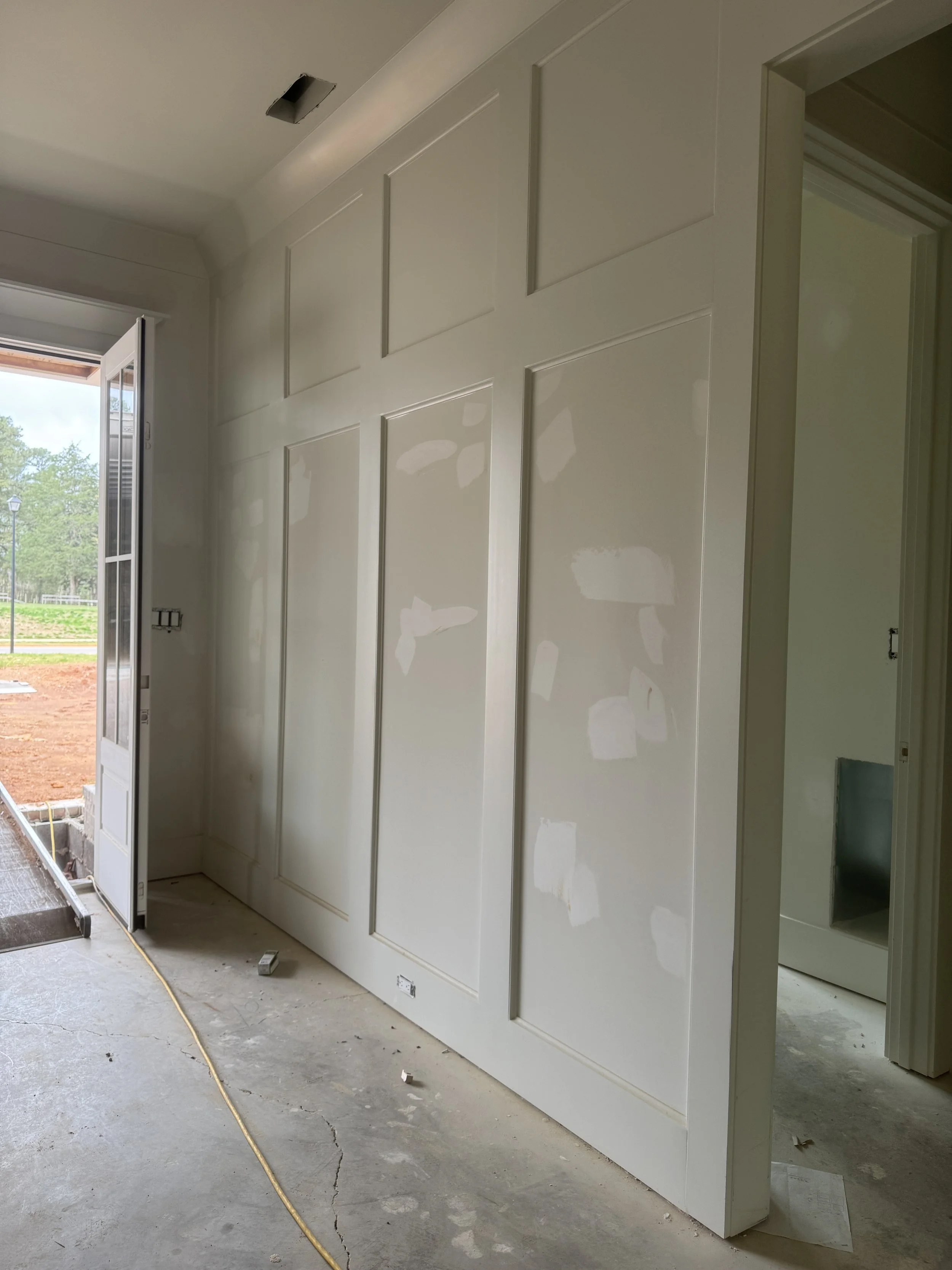 My first thought was “Wallpaper:”! But it was not to be, as this feature wall of molding was already decided upon and in the works.